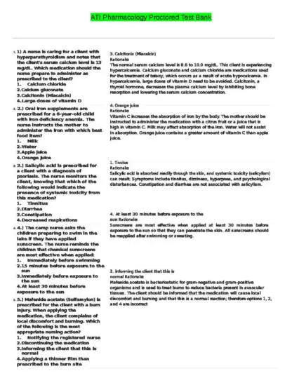 ATI Pharmacology Proctored Test Bank (Full Rationale for answers) Grade A+
