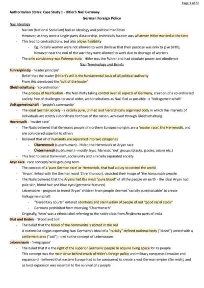 Ideology and Policies (Totalitarian control, anti-Semitism, nationalism)