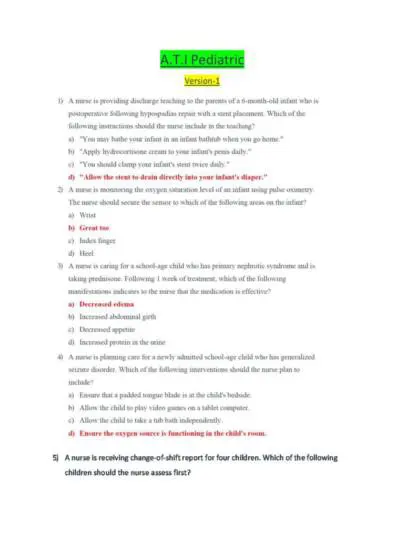 This comprehensive ATI RN Pediatrics Proctored Exam pack includes 26 full versions, covering over 2000 clinically accurate, scenario-based questions formatted to mirror the ATI and NCLEX-RN style. Each item comes with correct answers and rationales that reflect current pediatric nursing guidelines and best practices.