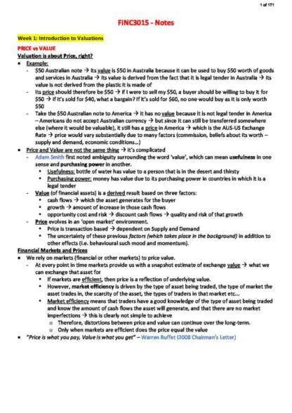 These are Financial Valuation: Case Study Approach (FINC3015) complete course notes. They cover all the details under FINC3015 at the USYD.