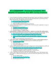 Detailed ATI RN Leadership Proctored Exam Q&A set with 70 high-yield questions and rationales. Enhance test readiness for nursing leadership concepts, delegation, ethics, and NCLEX-style…